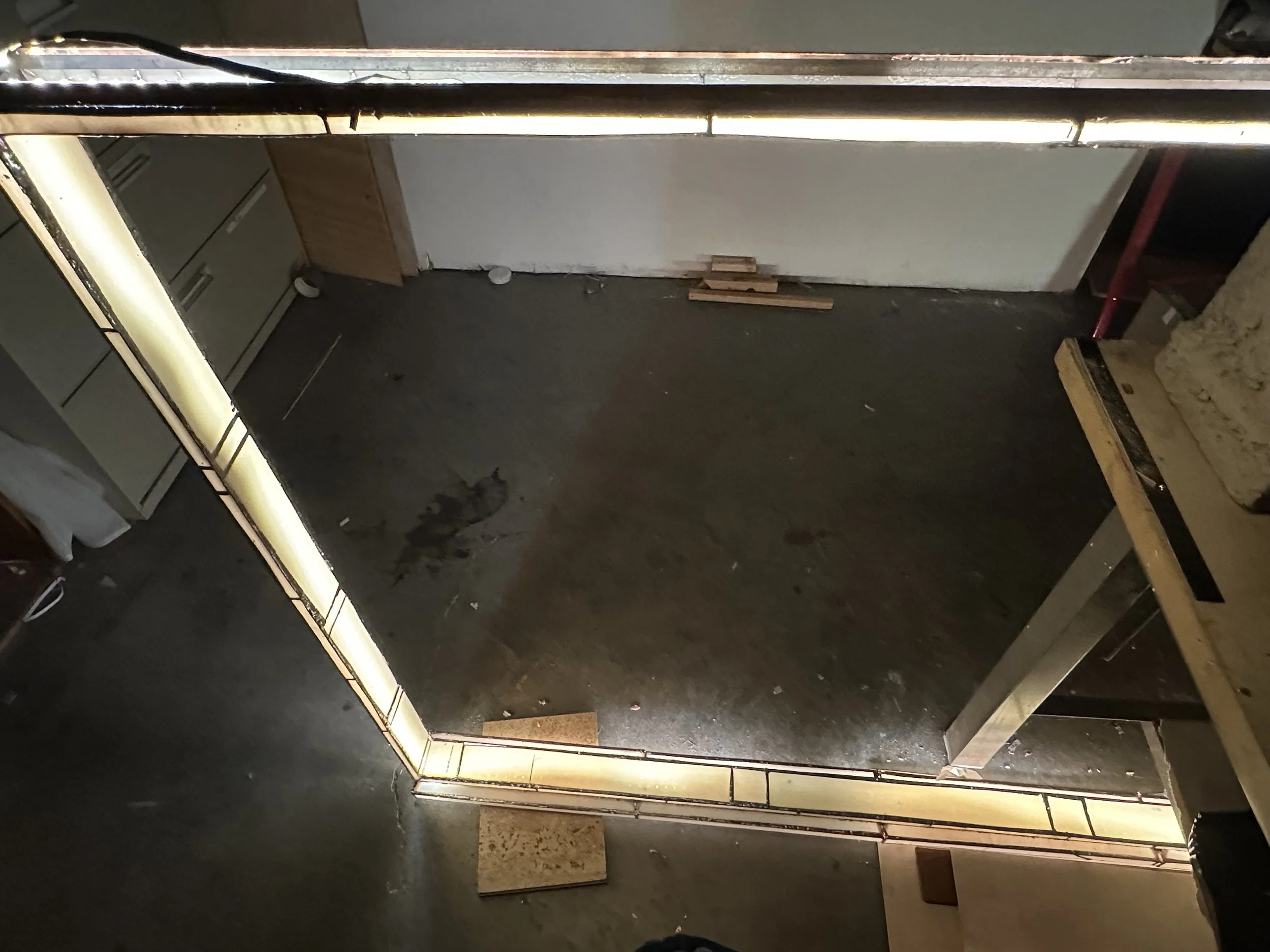Frame, 2025Glass, steel, silver, tin, lead, aluminum, LED64” x 75” x 8” ❋ The Reset Retreat: Yucca Valley